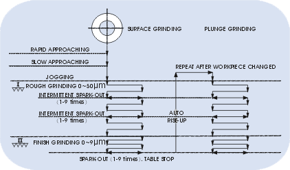 volume for finish grinding, target point, rise up point,