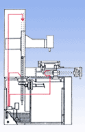 Vertical feed powered by double motors High efficiency AC motor for rapid up / down. Stepping motor for micro downfeed positioning and slow up / down. Quick digit output feedback by encoder.
